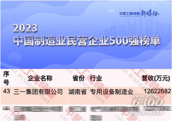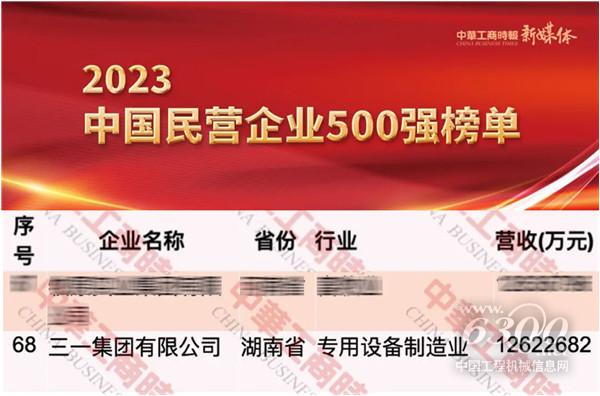 3.民营企业500强榜单发布,三一蝉联工程机械行业“双料冠军”;