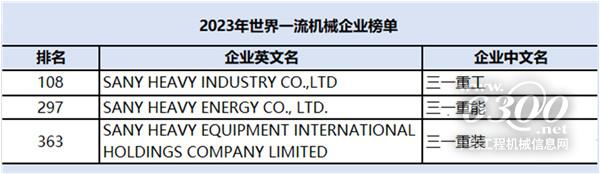 3.三一重工、三一重能、三一国际同时上榜2023年世界一流机械企业榜单;