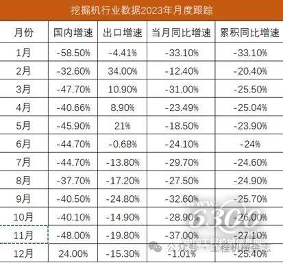 不过,虽然海外市场很大,但今年增长“减速”或已在路上,协会数据显示,2023年1-12月,挖掘机出口105038台,同比下降4.04%;其中12月份出口9073台,同比下降15.3%。从上表数据不难发现,今年上半年挖掘机出口增速较快,但下半年出口增速开始乏力,连续6个月出现同比负增长。
