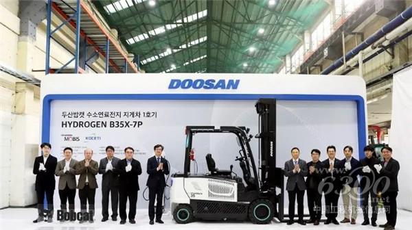 2024年1 月 31 日,斗山山猫在 30 日于韩国仁川叉车工厂举行的仪式上宣布推出首款氢燃料叉车。斗山山猫韩国公司总裁兼亚洲、拉美和大洋洲区域负责人 Hyungwon Park 和其他公司高管、韩国环境部气候变化和碳中和政策办公室副部长 Changheum Lee、韩国建筑设备技术研究所(KOCETI)所长 Heesu Kim 以及现代摩比斯公司执行董事 Youngbum Kum 出席了此次活动,现代摩比斯公司参与了首台氢燃料电池叉车的商业化开发。