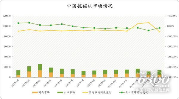 2023年全年,挖掘机海外市场优于国内市场,出口销量超过国内销量15058台。