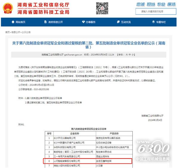 近日,湖南省工业和信息化厅对《第八批制造业单项冠军和通过复核的第二批、第五批制造业单项冠军企业名单》进行公示,山河智能全液压履带桩架成功登榜,这是继液压静力压桩机、旋挖钻机之后,山河智能产品第三次“夺冠”,进一步彰显了硬核的研发制造能力。