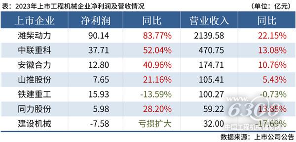 据不完全统计,截至3月28日,共有7家工程机械行业上市企业公布了2023年度业绩,合计营收达3081.94亿元,合计净利润为162.63亿元。5家企业实现营收和净利润“双增”。其中,潍柴动力、中联重科净利润均实现同比增超50%。
