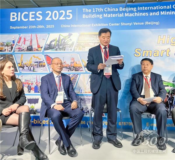 法国巴黎当地时间4月25日,第十七届中国(北京)国际工程机械、建材机械及矿山机械展览与技术交流会(BICES 2025)新闻发布会在法国巴黎INTERMAT展上召开,中国工程机械工业协会会长苏子孟、中国国际贸易促进委员会机械行业分会会长周卫东、中国工程机械工业协会秘书长兼北京天施华工国际会展有限公司董事长吴培国、土耳其建筑机械分销商和制造商协会代表、中国国际贸易促进委员会机械行业分会副会长杨克非、中国工程机械工业协会副秘书长王金星、中国热处理行业协会副秘书长孙小情、中联重科股份有限公司营销总公司副总经理史伟志、三一集团展会负责人刘娟、临工重机股份有限公司主任李纪鹏、贵州詹阳动力重工有限公司工程技术研究院院长高山铁等国内、国际行业协会代表、媒体代表和企业代表出席了发布会。发布会由周卫东主持。