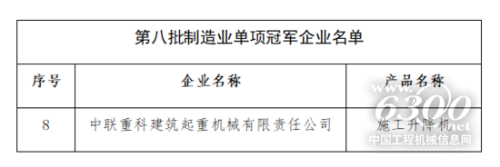 近日,工信部公布了国家第八批制造业单项冠军企业名单,中联重科建筑起重机械有限责任公司凭借施工升降机产品成功入选。