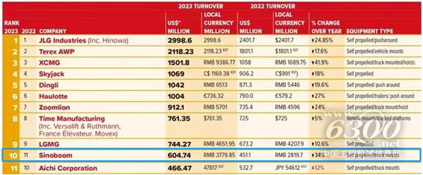 6.星邦智能入选2023年全球高空作业机械企业10强;