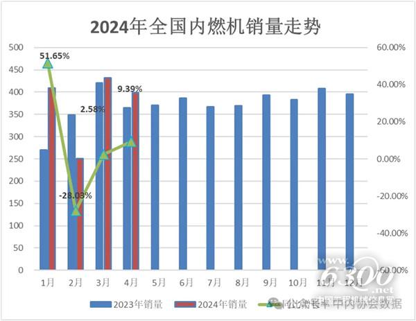 2024年4月内燃机销量398.18万台,同比增长9.39%;1-4月累计销量1489.90万台,同比增长6.19%。(较1-3月涨幅增加1.1个百分点)终端方面,商用车持续缓慢回升,农机、工程等市场销量形势依然较为严峻。