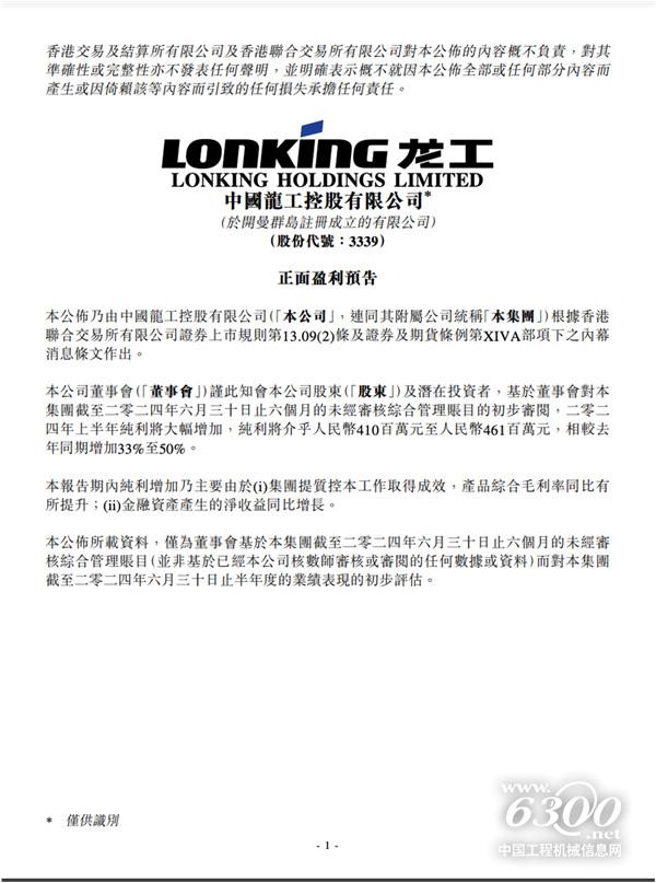 06 中国龙工预计上半年净利润同比增长33%~50%