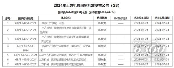 会上介绍,市场监管总局(国家标准委)发布了首批7项电动工程机械国家标准,标准发布即实施: