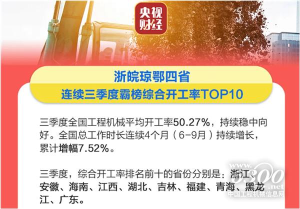 01 三季度全国工程机械平均开工率50.27%,持续稳中向好