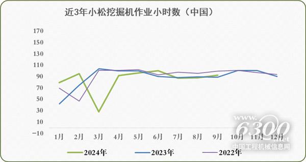 2024年9月小松挖掘机开工小时数为95.3小时 同比增长6.9%