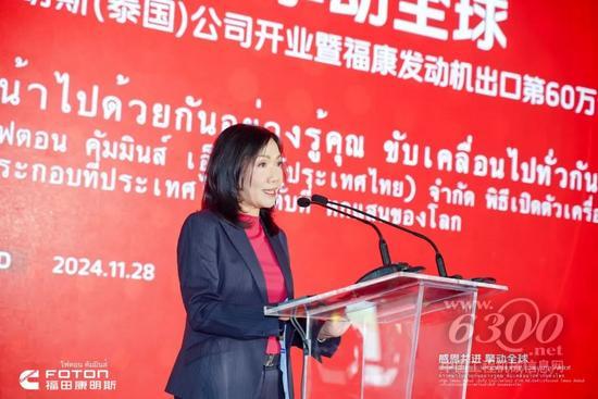 开业典礼上,福田康明斯总经理陈剑表示:“依托双方领先的整车及发动机技术研发、全面布局的销售、服务网络以及北京福田康明斯全球“灯塔工厂”的智造技术,福田康明斯已经为全球100多个国家和地区提供了多元动力解决方案,从裸机出口到助力整车出口,从欧洲、北美到全球市场,从聚焦商用车拓展到非道路应用,福田康明斯持续助力全球用户取得成功。福康泰国公司将共享北京福田康明斯先进的研发技术、共享全球供应链,坚守“零缺陷”质量原则,为全球用户提供高质量的发动机产品和智慧服务。”