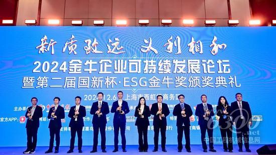 近日,由中国证券报和中国国新控股有限责任公司联合主办的2024金牛企业可持续发展论坛暨第二届国新杯·ESG金牛奖颁奖典礼在上海举行。