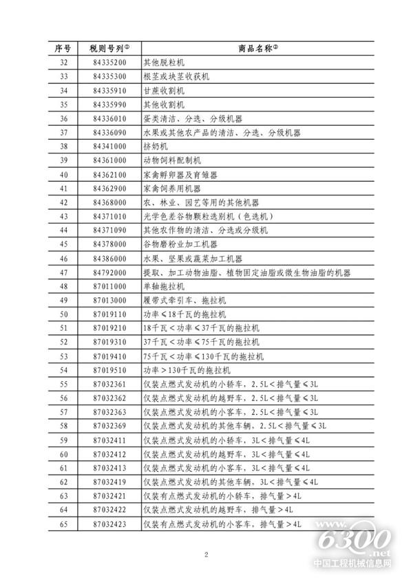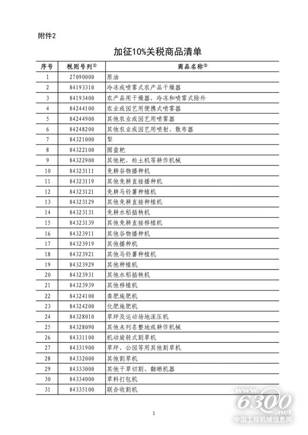 二、对原油、农业机械、大排量汽车、皮卡加征10%关税,具体商品范围见附件2。