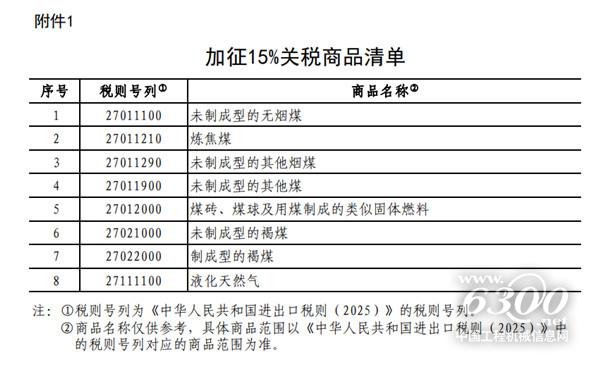 一、对煤炭、液化天然气加征15%关税,具体商品范围见附件1。