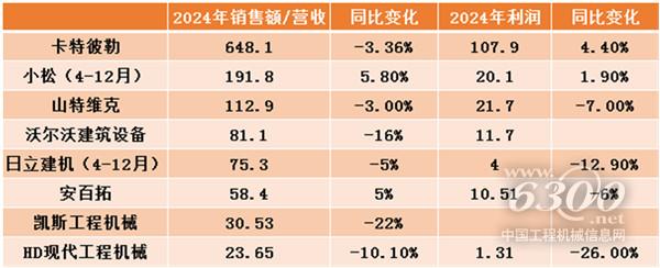 2.工程机械外资品牌发布2024财报,多家企业营收出现下滑;