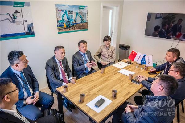 展会首日,付向东与中国工程机械工业协会会长苏子孟、秘书长吴培国、副会长李建友、名誉会长兼特别顾问祁俊等领导以及来自欧洲、南美洲等区域的客户展开交流。协会领导对山河智能率先出口挖掘机进入欧洲市场表示认可,并肯定山河智能的创新能力与国际化战略。