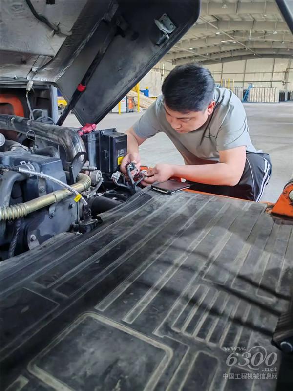 抵达故障现场后,王文飞严格遵循全柴标准化作业流程,在发动机舱高温环境下,运用系统化检测手段,对叉车进行全方位故障排查。凭借深厚的专业技术积淀与严谨细致的工作态度,其迅速锁定隐蔽性线束老化问题。在狭窄的维修空间内,王文飞严格执行全柴维修工艺标准,规范操作、精细作业,确保维修质量达到最高要求。故障修复完成后,为切实保障设备运行稳定性与可靠性,其严格依照全柴售后服务规范,协同客户开展长达 12 小时的全天候路试工作,以科学严谨的验证流程,全面检验维修成果。