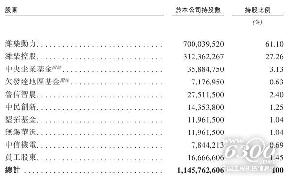 招股书显示,潍柴雷沃前身是2004年在山东潍坊市成立的山东福田重工股份有限公司,经过多轮股权变更和增资,截至2025年6月15日,主要由潍柴动力和潍柴控股持有约61.10%和27.26%的股权。潍柴控股则由山东重工全资拥有。