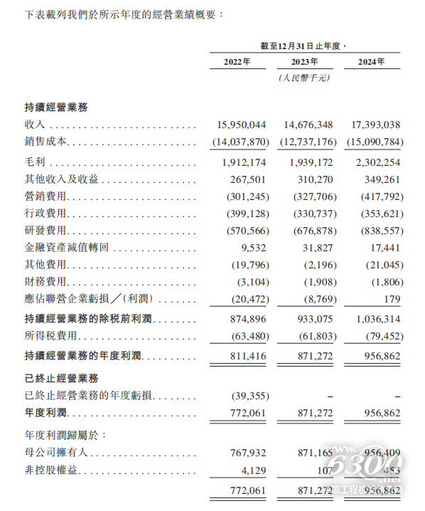 近年来,潍柴雷沃的业绩表现虽有波动,但整体呈向上趋势。据招股书,2022年至2024年,潍柴雷沃的收入分别为159.5亿元、146.76亿元、173.93亿元;归母净利润分别为7.68亿元、8.71亿元、9.56亿元。