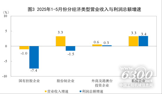1-5月份,规模以上工业企业中,国有控股企业实现利润总额8709.5亿元,同比下降7.4%;股份制企业实现利润总额20170.7亿元,下降1.5%;外商及港澳台投资企业实现利润总额6856.8亿元,增长0.3%;私营企业实现利润总额7592.5亿元,增长3.4%。