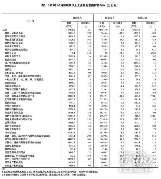 1-5月份,采矿业实现利润总额3580.4亿元,同比下降29.0%;制造业实现利润总额20201.4亿元,增长5.4%;电力、热力、燃气及水生产和供应业实现利润总额3422.5亿元,增长3.7%。
