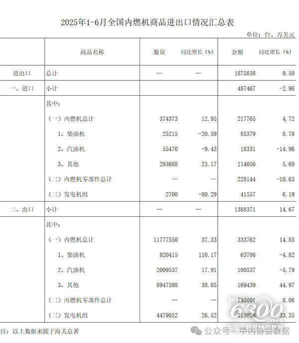 柴油机出口6.38亿美元,同比增长-4.82%;