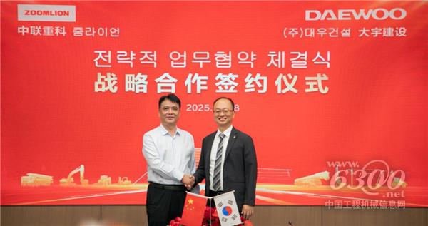 2025年8月18日,中联重科与韩国大宇建设(Daewoo E&C)在长沙签署战略合作协议,双方就深化国际工程建设领域合作达成共识。中联重科联席总裁、工程起重机公司总经理罗凯与大宇建设高级副总裁赵喆基等人出席座谈并签约。