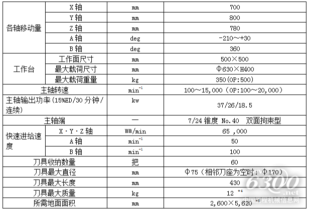 在坚固的主体结构的基础上,采用双盘夹紧方式牢牢固定旋转工作台。A轴(倾斜)和B轴(旋转)采用直驱电机,Z轴采用双驱动轴,实现了X、Y、Z轴各轴的快速进给速度65m/min,A轴快速进给转速50min-1,B轴快速进给转速100min-1和高速进给。通过高速ATC大幅缩短非切削时间的同时,利用最高转速为15,000min⁻¹的主轴进行高速加工,从而缩短了整个加工周期。