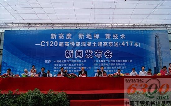 中联重科C120超高性能混凝土超高泵送417米新闻发布会