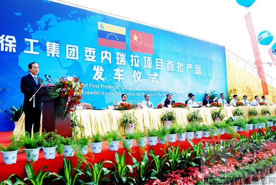 委内瑞拉驻中国公使贡萨罗•比瓦斯先生,徐州市市长张敬华,中国机电商品进出口商会会长张钰晶,中国商务部美大司处长刘晓峰,国家开发银行处长周顺顺,徐州市副市长李坚,副市长张赴宁,市政府秘书长周建洪,市政府副秘书长王琦,委内瑞拉石油公司驻华代表马尔克•盖莱洛先生,徐工集团董事长王民等嘉宾出席了发车仪式,共同见证了这一具有历史性意义的重要一刻。张敬华市长现场向贡萨罗•比瓦斯公使赠送了徐工—委内瑞拉工程机械设备的金钥匙。新华社、中央人民广播电台、中央电视台、凤凰卫视、中国新闻网、中国证券报、中国工业报、新华日报、江苏经济报、徐州日报、徐州电视台等主流媒体现场报道了仪式盛况。