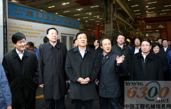 11月29日,细雨霏霏,冬意袭人。中共中央政治局委员、中央书记处书记、中宣传部部长刘云山在省委书记罗志军、省委常委、宣传部部长杨新力、市委书记曹新平、市长张敬华等省市领导的陪同下,冒雨视察徐工。徐工集团董事长、党委书记王民,党委副书记李格,徐工机械副总裁、重型总经理陆川等陪同活动。