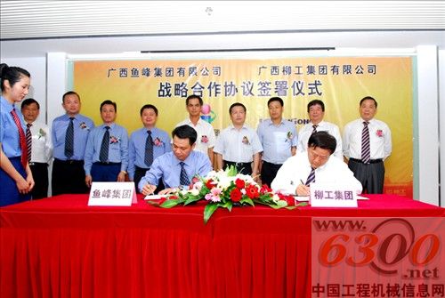 6月5日,柳工集团公司与广西鱼峰集团有限公司战略合作框架协议签署仪式在柳工大厦举行。公司董事长王晓华与鱼峰集团董事长韦宁分别代表双方公司在协议上签字。根据协议,双方将依托各自在水泥及混凝土生产、工程机械及混凝土设备开发使用等方面的优势,在产品和设备采购、水泥熟料生产线的润滑方案等方面进行深度合作。自治区国资委主任肖文荪、副主任潘世庆、覃卫国,鱼峰集团总经理杨义,以及我集团公司总裁杨一川、党委副书记王相民、副总裁章二平等领导共同见证了这一历史时刻。