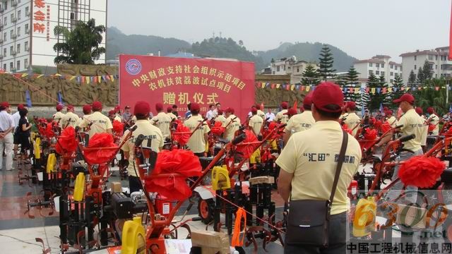 6月15日,中央财政支持社会组织示范项目“农机扶贫荔波试点项目”赠机仪式在国家级贫困县贵州省荔波县市民广场举行,中央财政支持项目向贫困用户赠送了配套常柴186FA柴油机的78台微耕机。公司副总经理徐振平参与了赠机仪式。