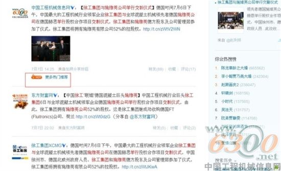 “徐工集团与施维英公司举行交割仪式”首播微博成新浪热门推荐