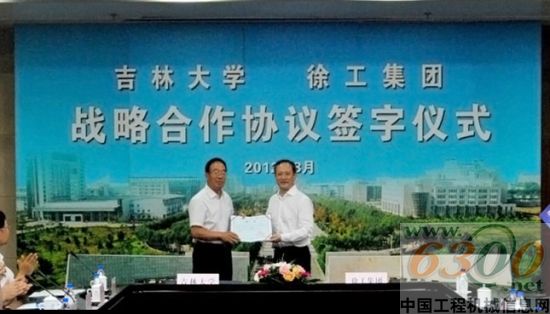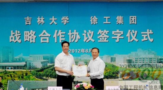 王民董事长在致词中说,此次战略合作协议的签署标志着全国办学规模最大、学科门类最齐全的全国重点综合性大学吉林大学与位居中国工程机械行业第一、世界工程机械行业前列的徐工集团的战略合作进入了一个新的历史阶段,掀开了校企合作史上新的一页。他表示,徐工集团今后要与吉林大学加强合作、扩大合作、长期合作、全面合作、重点合作,全力支持吉林大学发展,同时期待吉林大学对徐工集团给予更多的支持和帮助。他强调,在合作中要充分利用吉大的人才优势、技术资源和创新能力,发挥徐工产品开发及生产制造能力,在工程机械、重型汽车、特种车辆及其核心零部件基础理论研究与前沿技术、新产品开发、关键技术攻关、人才培养、学术交流、资源共享等方面开展全面合作,共同推进工程机械行业的技术进步,产品质量的提高,为创世界品牌,实现吉大成为世界一流大学的目标和徐工成为世界级企业的目标共同奋斗。