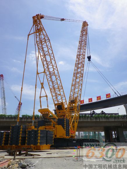 8月14日,徐工QUY650履带起重机在杭州滨江区滨文路与时代大道交叉处彩虹路工地施工,现场采用超起72米主臂工况,超起平衡重半径16米,灵巧地在施工现场进行走、旋转,在蔚蓝天空下,尽情展现他矫健的身子,灵巧地将重达220吨的高架桥板准确、高效地吊到指定位置。(徐工   陆鹤)