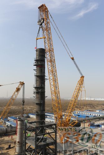 日前,徐工XGC15000履带起重机转战于兖矿集团在鄂尔多斯市投资53亿的新能源项目工地。徐工XGC15000作为此次吊装的主力,现场采用超起72米主臂,在另外一台中小吨位的履带起重机协作下,轻松将重达720吨重的反应塔,精确吊装到指定位置,负载率将高达90%以上。