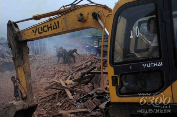 “我们当时刚上班,正准备工作,就感觉周围都在晃动,有人说地震了,我们就迅速往楼外跑,等跑到楼外后听同事说雅安发生7.0级地震,我便立即与代理商联系,雅安发生地震一定需要挖掘机。”玉柴重工成都办事处主任是这样与我们说。组织了当地客户与机手,与灾区救援队沟通后,玉柴挖掘机救援队接受抗震指挥部调配,出发至四川省芦山县清仁乡与武警四川总队的官兵们一起进行搜救。
