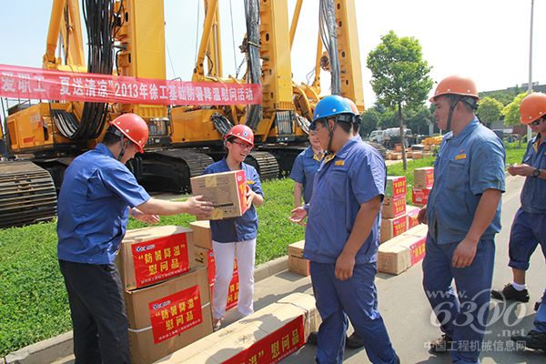 “这两天36度的高温实在太热了,有了这些东西从心里凉快”,一位员工高兴的说。近日,徐工基础公司为一线高温工作人员送去实用物品、药品,同时发放手册教授健康知识,传递关爱;同时每天两次将高温汤、冰糕等送到一线;使得一线员工在炎炎夏日有了高温天气挡不住的清凉心情。
