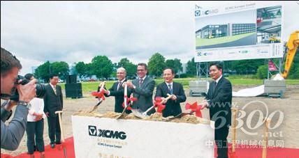 徐工加快实施“走出去”战略,徐工欧洲和徐工巴西基地已建成投产,东欧、中东、印度等6大海外装配工厂正在建设。图为2012年7月6日,徐工集团欧洲有限公司和徐工海外技术中心奠基仪式在德国克雷菲尔德盛大举行。