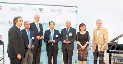 7月8日,徐工集团获得德国北威州2013年度最佳投资奖,成为首个获此奖的中国企业。图为北威州经济部部长杜因先生(右五)、北威州投资署署长华?女士(右二)向徐工集团代表(中)颁发最佳投资奖奖杯和证书。