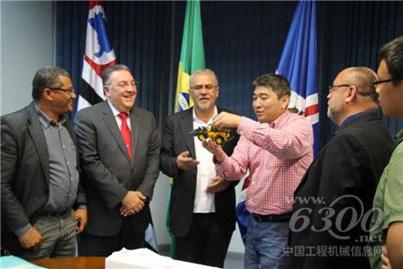 图为徐工方向圣保罗州瓜鲁柳斯市方赠送礼品。
