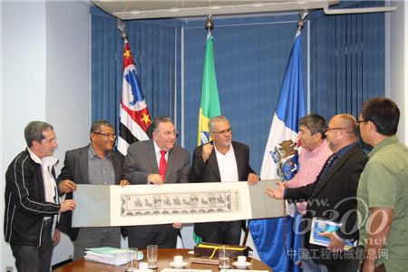 10月16日,圣保罗州瓜鲁柳斯市市政府领导班子与徐工巴西圣保罗销售服务公司一行就贸易投资、城市建设、社会公益等内容进行了深入会谈。瓜鲁柳斯市市长表示:非常欢迎徐工来巴西投资,希望徐工的加入能够为该地区的经济建设添加新的活力。瓜鲁柳斯市经济局局长、投资部部长参加了此次会谈,会谈后徐工圣保罗公司代表徐工集团向瓜鲁柳斯市市长赠送了徐工车模作为礼物,会后,双方合影留念。