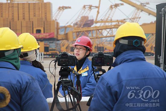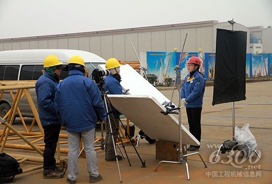 摄制组在智能化装载机基地连续四天紧张顺利拍摄后,顾不上休息就来到徐工大黄山起重机新基地拍摄大吨位起重机调试。预报说天气将有变化,而且大吨位起重机调试后,就要拆卸发往客户,所有工作要迅速完成。拍摄机会难得!戈导笑谈她曾听到过一句话“天佑徐工!”,那一天天气真的好给力。