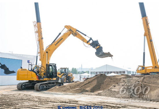 柳工设备在占地4759平方米的现场展会上进行施工演示