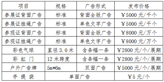4、室内标准展位费用包括:场地费、三面围板、门楣及两只射灯、一个电源插座(220V/15A)、一桌两椅、会刊制作费、清洁费、保安费、代表证等。