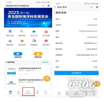 点击展商秀底边栏中央的【我要参会】按钮,直接报名参加青岛海科展,避免现场登记注册麻烦。提前预登记的观众还可以享有免费午餐等展会特权!