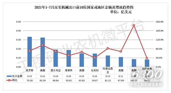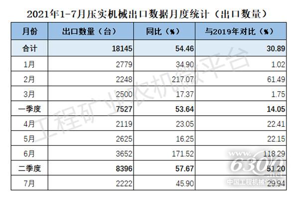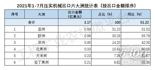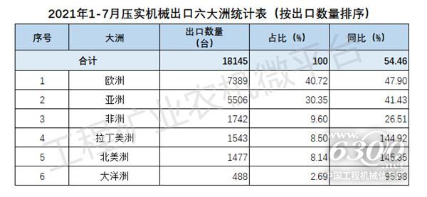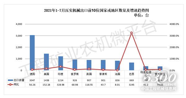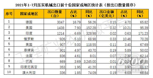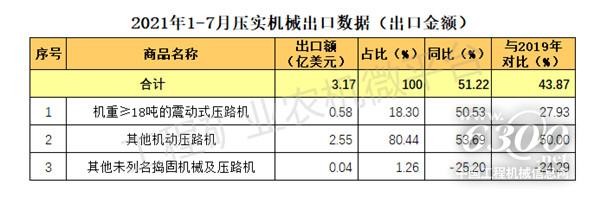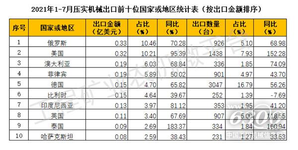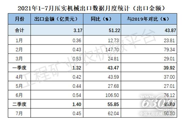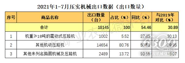 2021年1-7月我国压实机械出口数据概览