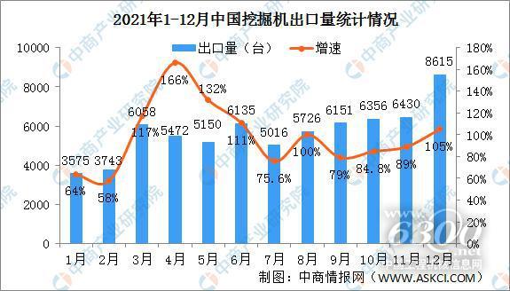据中国工程机械工业协会对25家挖掘机制造企业统计,2021年12月销售各类挖掘机24038台,同比下降23.8%;其中国内15423台,同比下降43.5%;出口8615台,同比增长105%。